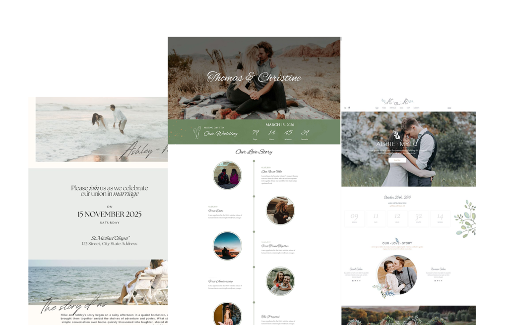Reflecting sophistication and refinement, our wedding website designs exude elegance, setting the tone for a memorable celebration.