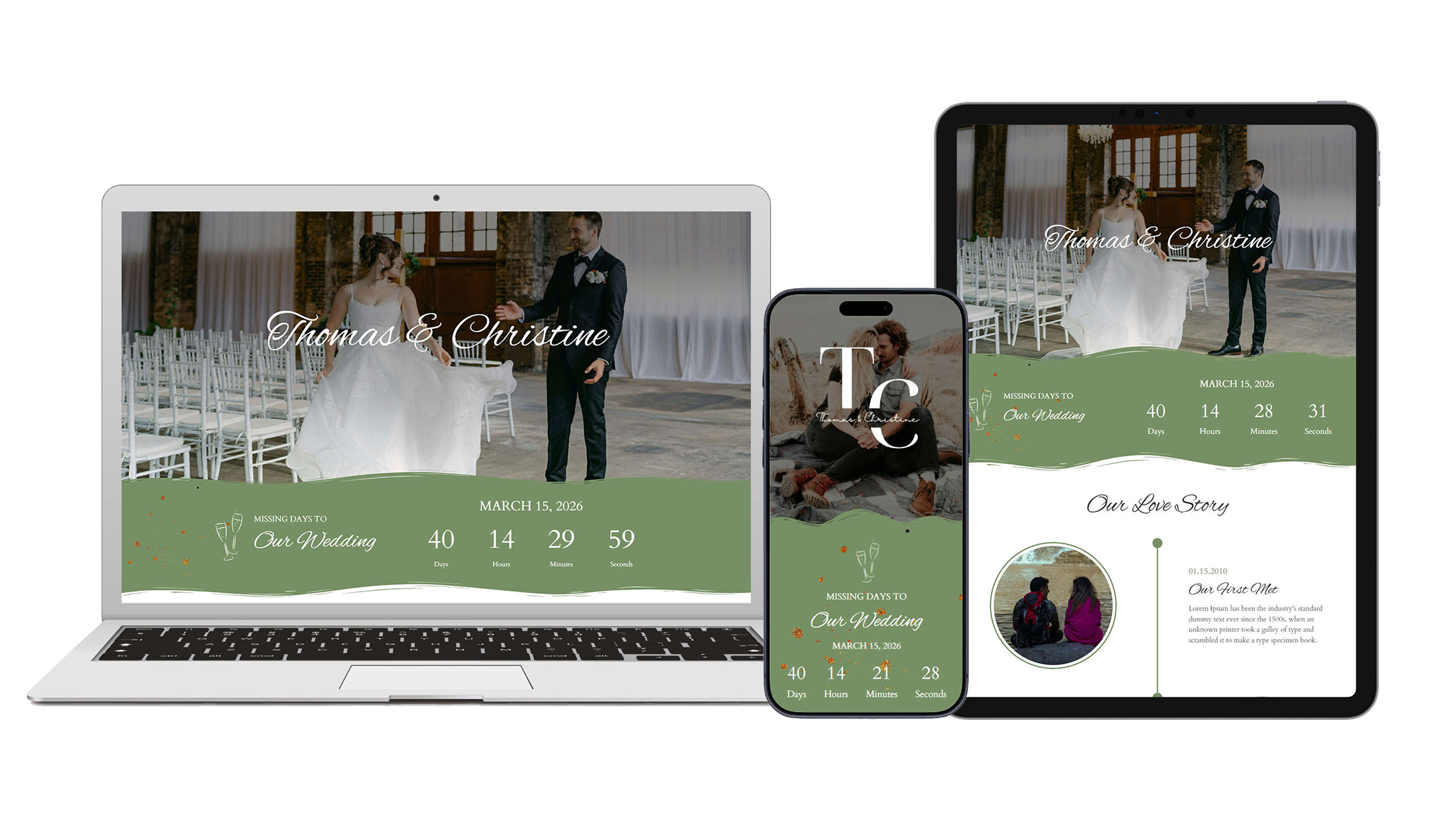 Once the development is complete, your wedding webpage will be hosted on our special domain or your own prepared domain, depending on the package you choose.
